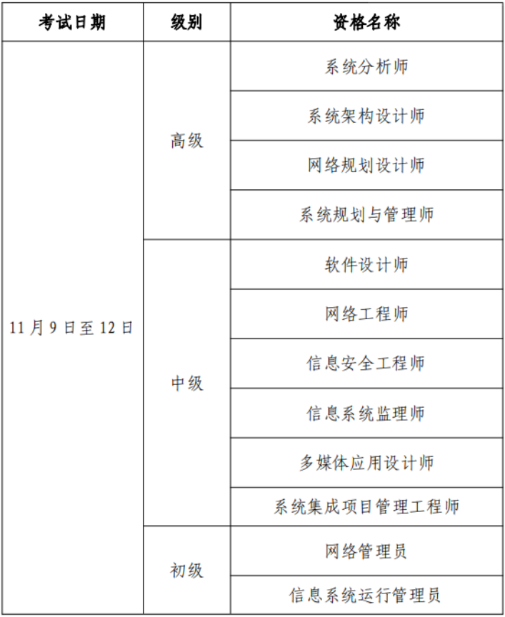 2024年11月黑龍江軟考考試時(shí)間:11月9日-12日