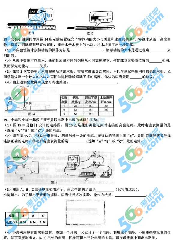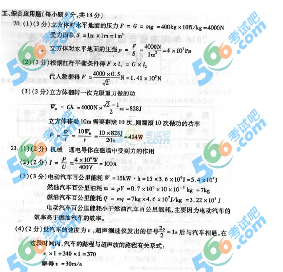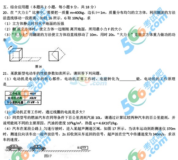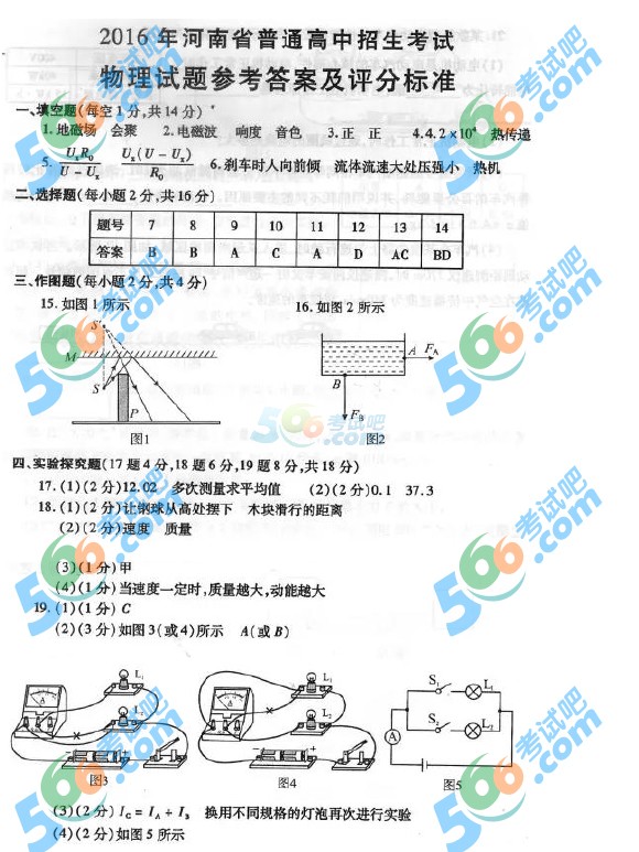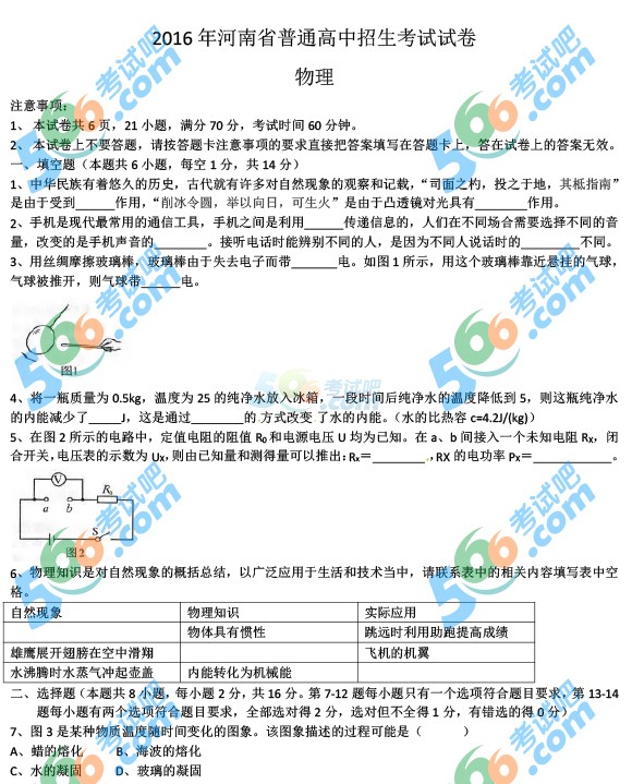 2016年河南中考物理試題及答案