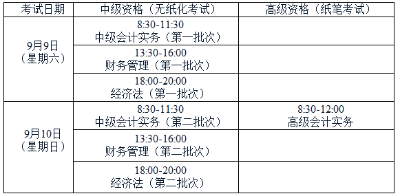 中級(jí)資格考試于2017年9月9-10日分兩個(gè)批次舉行。考試科目為《中級(jí)會(huì)計(jì)實(shí)務(wù)》(考試時(shí)長(zhǎng)3小時(shí))、《財(cái)務(wù)管理》(考試時(shí)長(zhǎng)2.5小時(shí))和《經(jīng)濟(jì)法》(考試時(shí)長(zhǎng)2小時(shí)),實(shí)行無(wú)紙化考試。