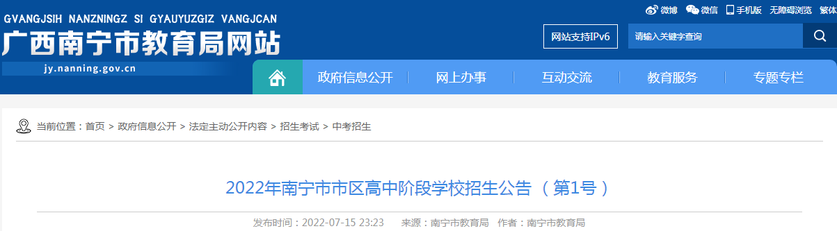 從廣西南寧市教育局了解到,2022年廣西南寧市區(qū)高中階段學校招生公告 (第1號)已發(fā)布,詳細內(nèi)容如下: