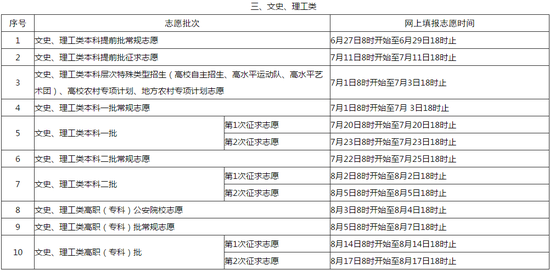 (一)文史、理工類(lèi)設(shè)本科提前批、本科一批、本科二批和高職(專(zhuān)科)批四個(gè)批次。