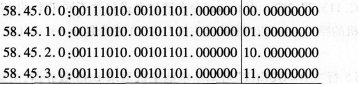 網(wǎng)絡(luò)號(hào)為:00111010.00101101.00000000.00000000,子網(wǎng)掩碼是/22。即58.45.0.0/22。故④處匯聚后的網(wǎng)絡(luò)為58.45.0.0/22。