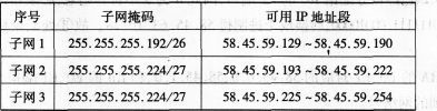 3.如果將58.45.59.128/25劃分3個(gè)子網(wǎng),其中第一個(gè)子網(wǎng)能容納48臺(tái)主機(jī),另外兩個(gè)子網(wǎng)分別能容納29臺(tái)主機(jī),請(qǐng)寫出子網(wǎng)掩碼及可用的IP地址段(6分)。(注:請(qǐng)按子網(wǎng)順序號(hào)分配網(wǎng)絡(luò)地址)。