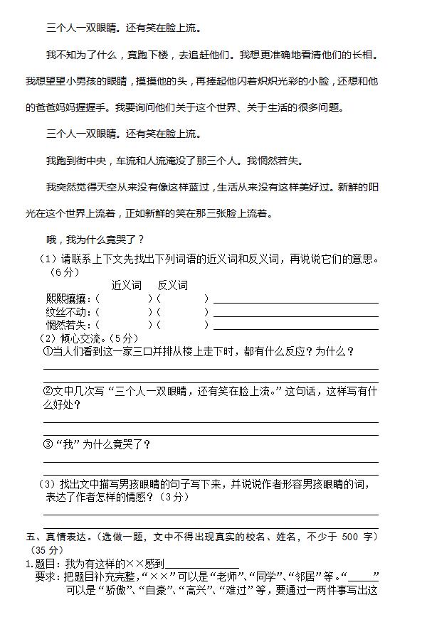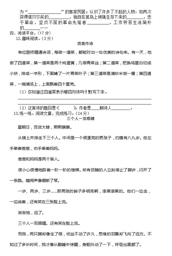 湖南黃岡黃州區(qū)小升初考試語文真題