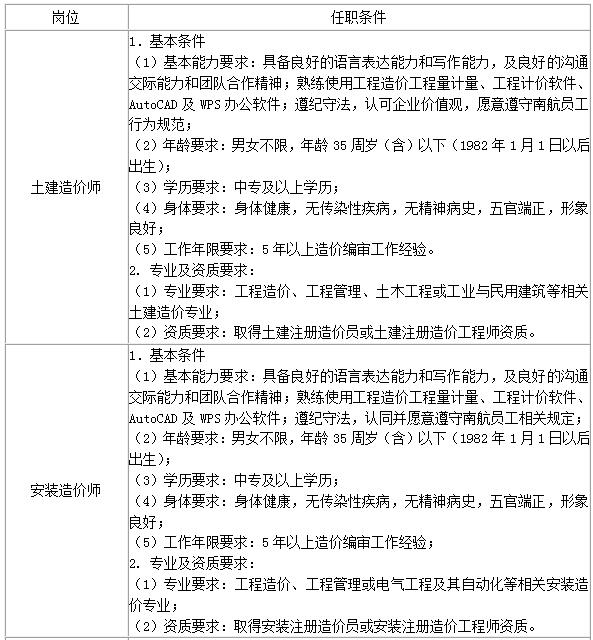 中國南方航空股份有限公司基建管理部招聘組
