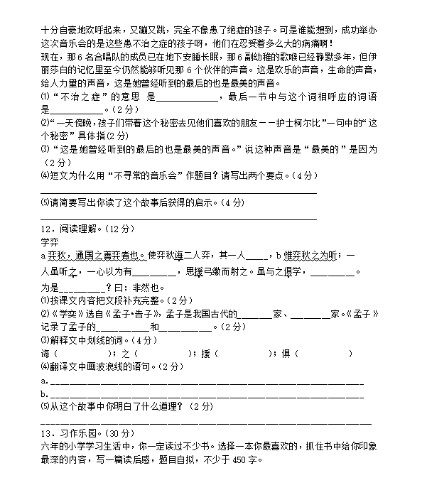 2017年人教新課標版小升初語文全真模擬試題及答案解析第二套