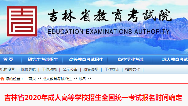 成人高考頻道從吉林省教育考試院了解到,吉林省2020年成人高等學(xué)校招生全國統(tǒng)一考試報名時間已公布,具體如下:
