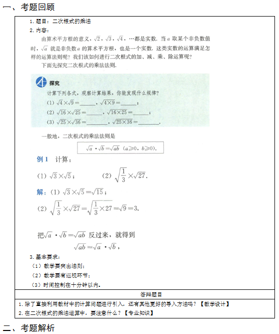 2017上半年初中數(shù)學(xué)教師資格證面試真題精選(第一批)
