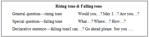 (1) General question---rising tone Would you…? May I…? Are you…?