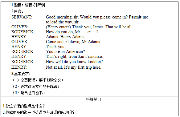 在剛才的試講中涉及到了陳述句、一般疑問句和特殊疑問句的在口語中運(yùn)用的音調(diào)規(guī)則。實(shí)際上在真實(shí)的交際中找到更多的規(guī)則,在讀選擇疑問句和反義疑問句時(shí)應(yīng)前升后降;