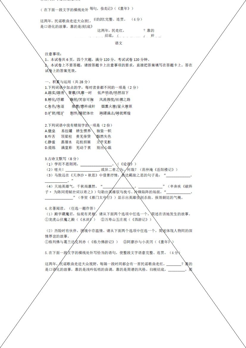 2017年河南許昌中考語文試題【已公布】
