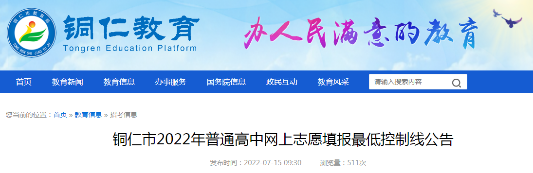 從銅仁教育網(wǎng)了解到,貴州銅仁市2022年普通高中網(wǎng)上志愿填報(bào)最低控制線公告已發(fā)布,詳細(xì)內(nèi)容如下: