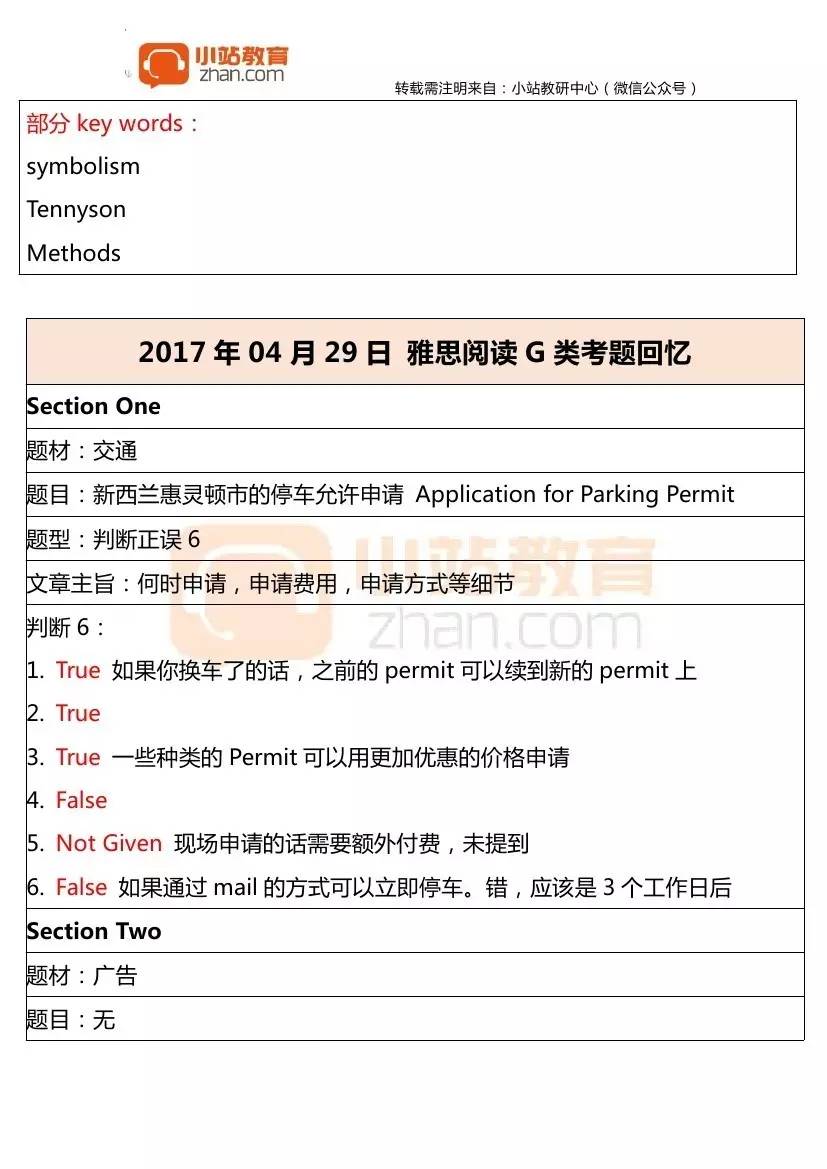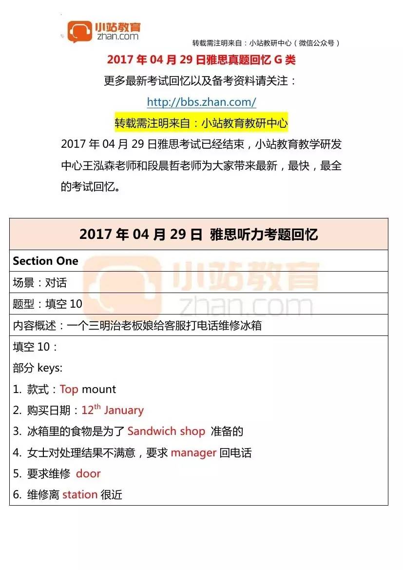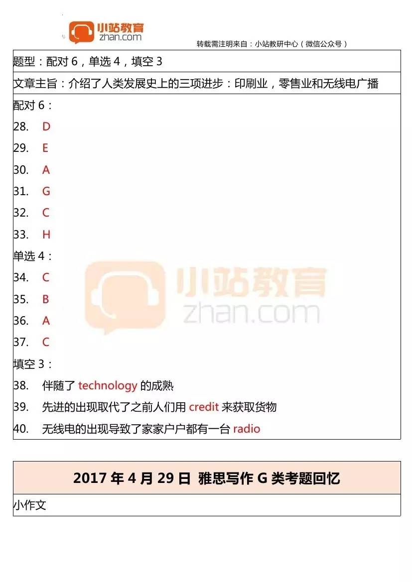 2017年4月29日雅思真題回憶G類+答案