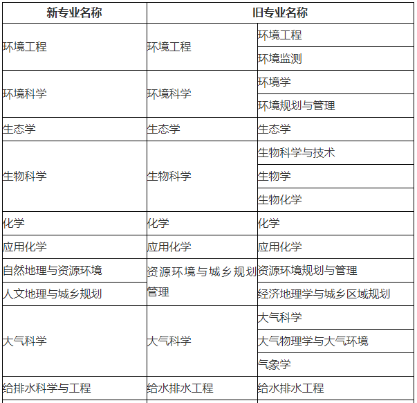 附:環(huán)境保護相關(guān)專業(yè)新舊對應表