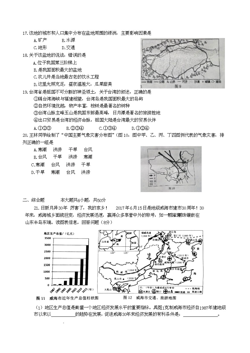 人生處處是考場(chǎng),今日各為中考忙。斗智斗勇齊亮相,得失成敗走一場(chǎng)??紙?chǎng)瀟灑不虛枉,多年以后話滄桑!2017年山東威海中考地理科目考試已落下帷幕,在考后第一時(shí)間提供山東威海中考地理試卷及答案解析,供廣大考生參考估分。預(yù)祝各位考生取得優(yōu)異的成績(jī),順利考入理想的高中!