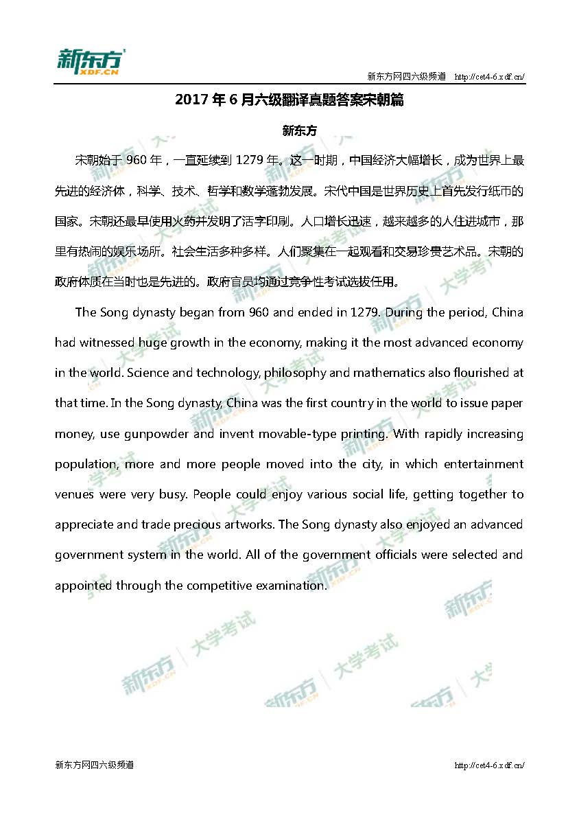 2017年6月英語(yǔ)六級(jí)翻譯答案:宋朝