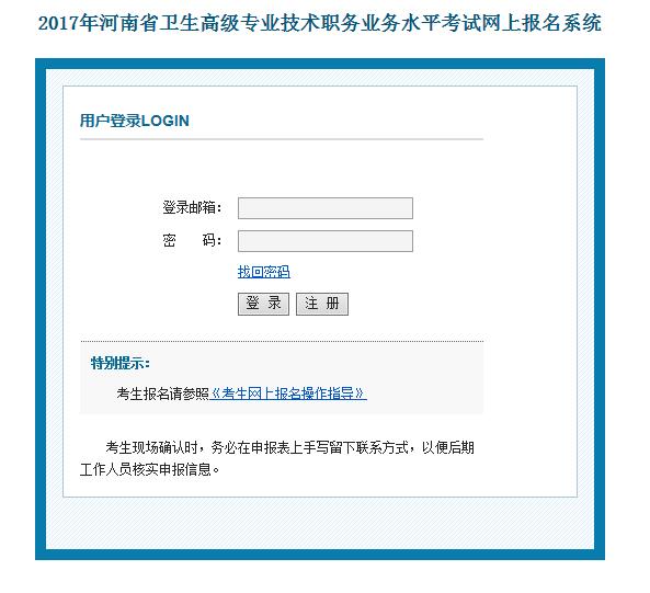 2017年河南省衛(wèi)生高級專業(yè)技術(shù)職務(wù)業(yè)務(wù)水平考試網(wǎng)上報(bào)名系統(tǒng)