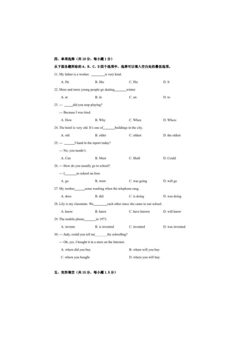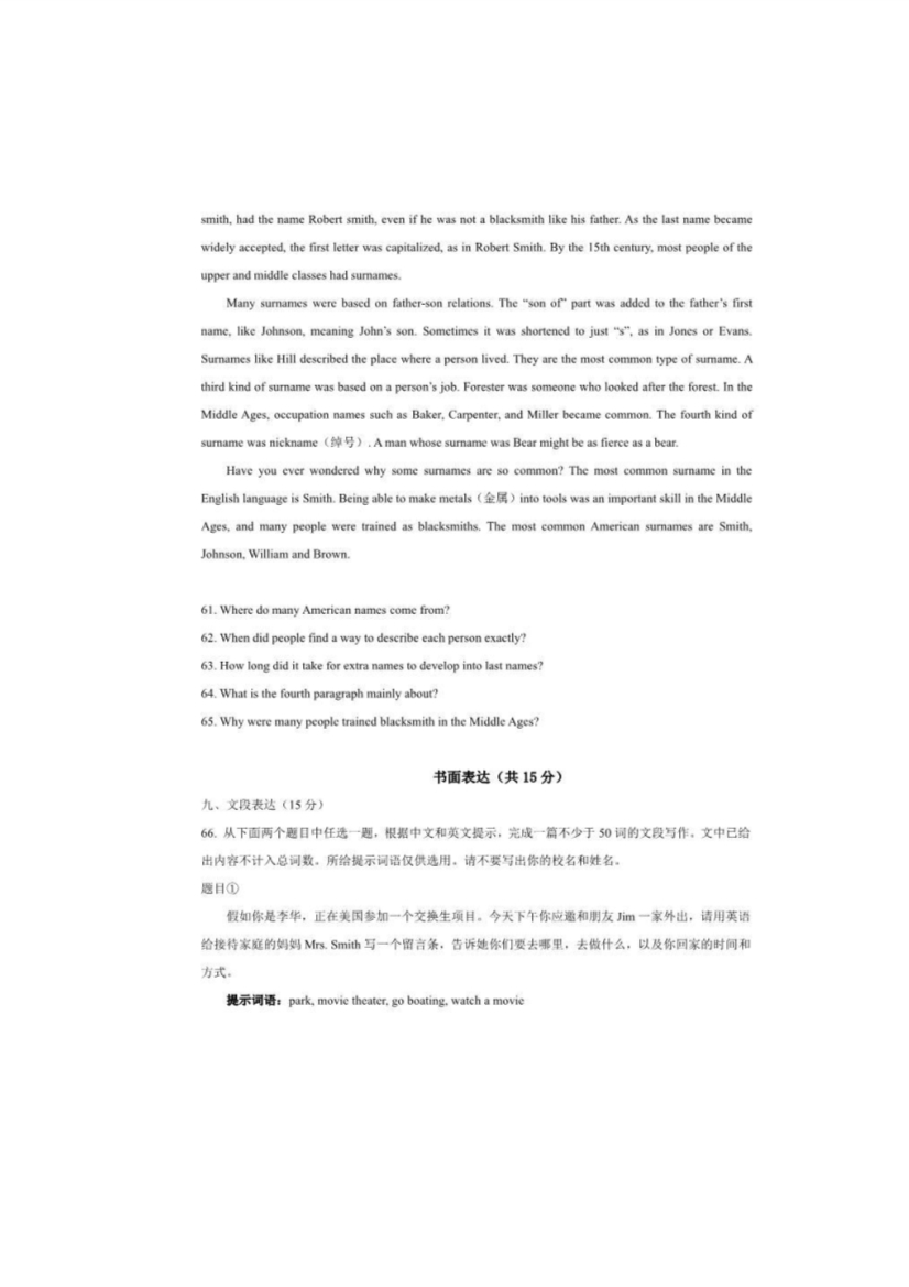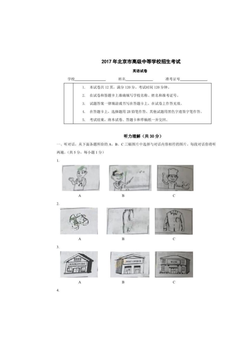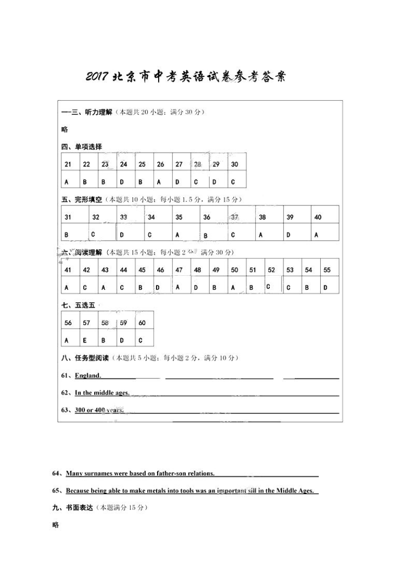 2017年北京豐臺中考英語試卷及答案(已公布)