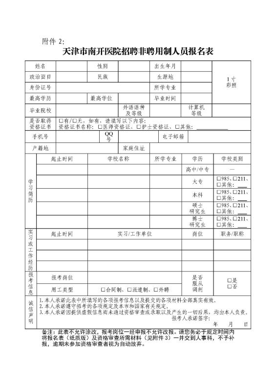 下載:天津市南開醫(yī)院招聘非聘用制人員報名表