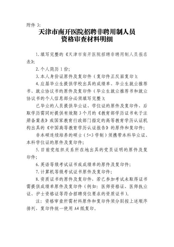 下載:天津市南開醫(yī)院招聘非聘用制人員資格審查材料明細