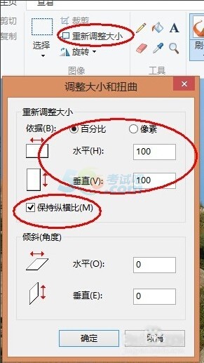 2、在畫圖的工具欄選擇“重新調(diào)整大小”選項(xiàng),彈出對(duì)話框。