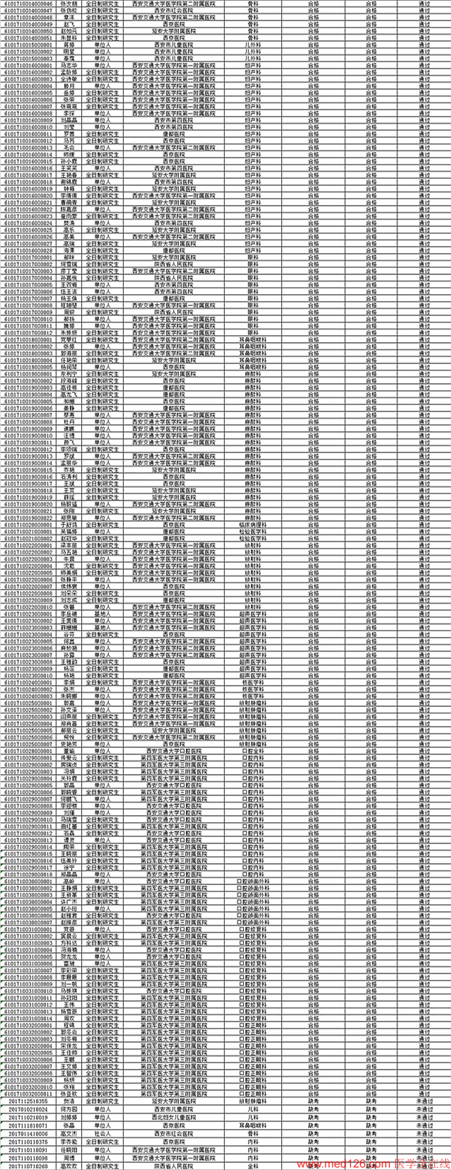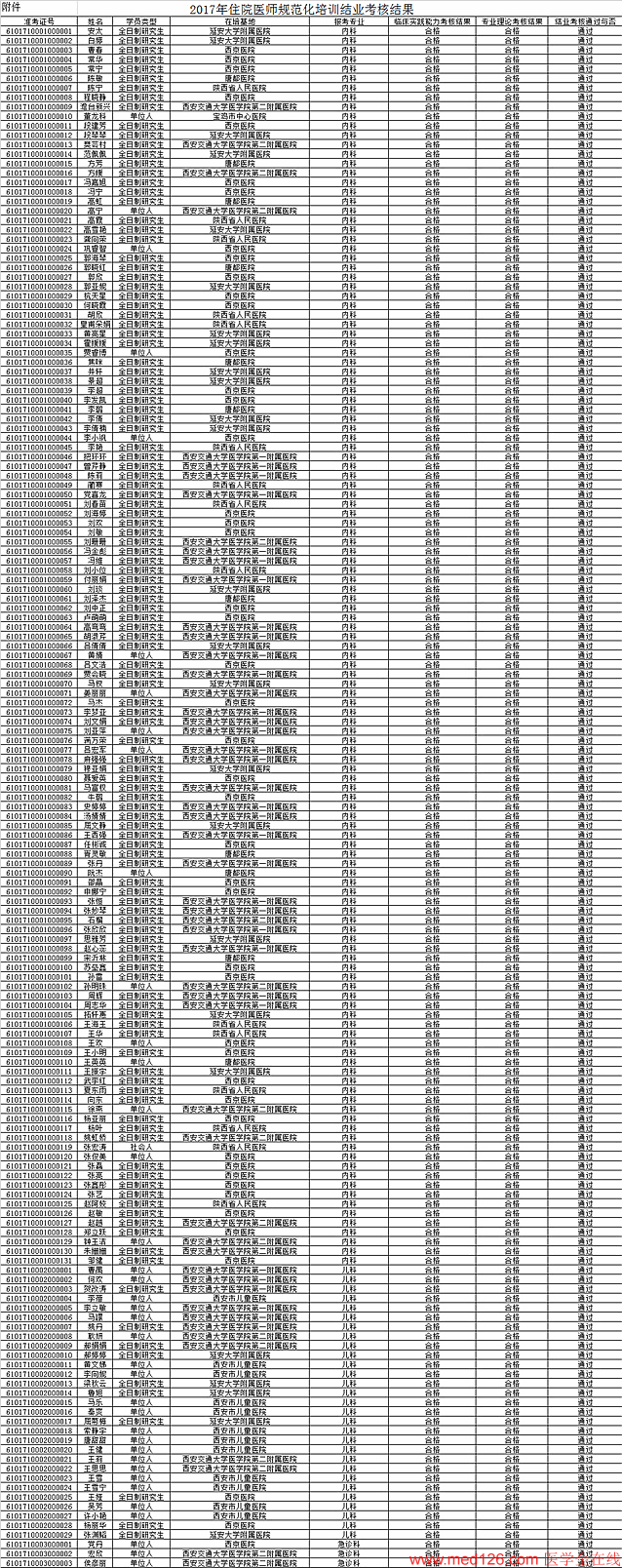 附件:2017年住院醫(yī)師規(guī)范化培訓(xùn)結(jié)業(yè)考核結(jié)果