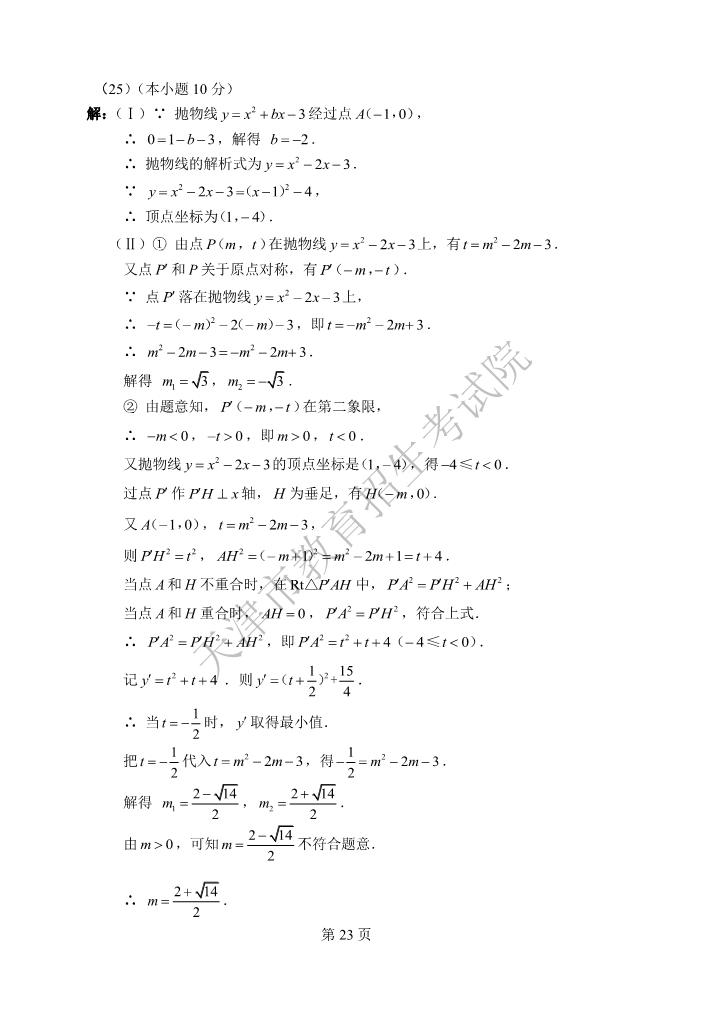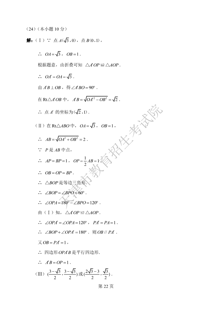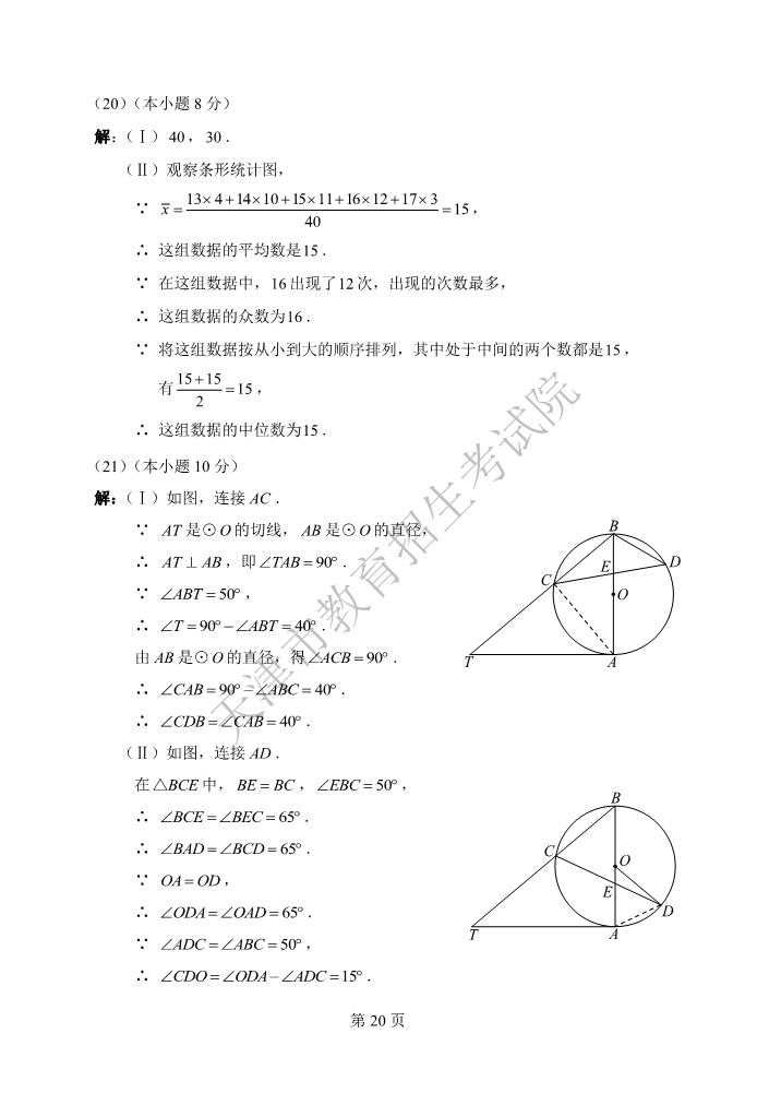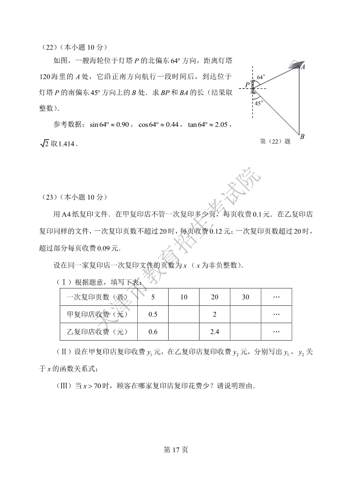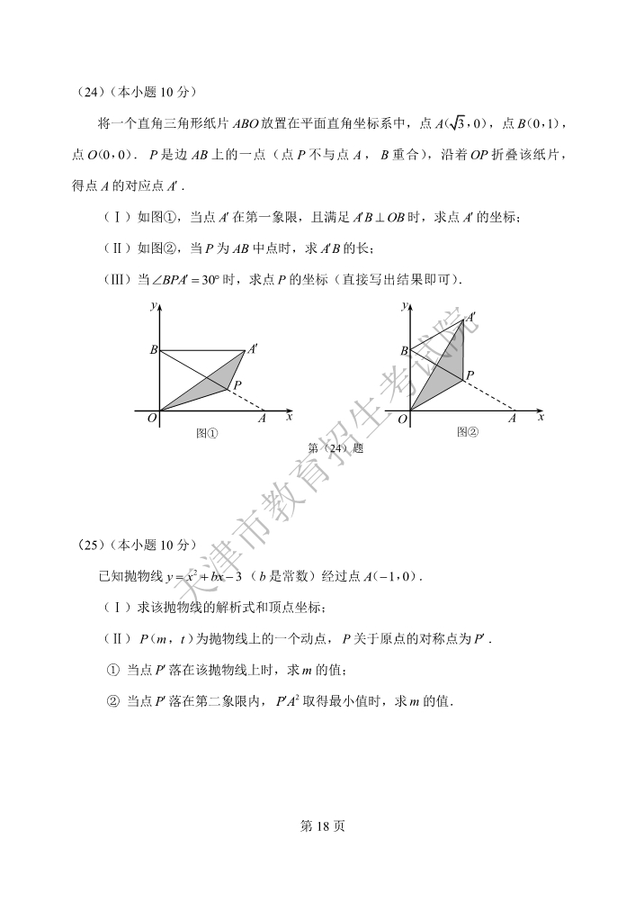2017年天津南開中考數(shù)學(xué)試題及答案(已公布)
