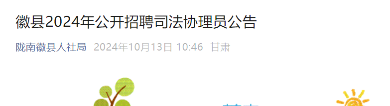 (一)通過(guò)“隴南徽縣人社局”“隴南徽縣司法”微信公眾號(hào)發(fā)布招聘司法協(xié)理員公告。