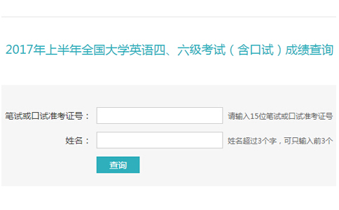 點(diǎn)擊進(jìn)入>>>2017年6月俄語(yǔ)四六級(jí)成績(jī)查詢?nèi)肟谝弧疽验_通】