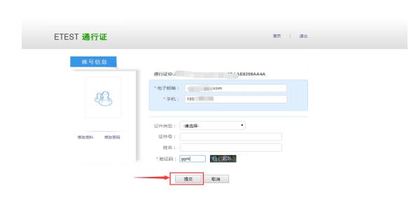 5、進(jìn)入到“通行證系統(tǒng)”(https://passport.etest.net.cn),填寫手機(jī)號進(jìn)行綁定,點(diǎn)擊“提交”