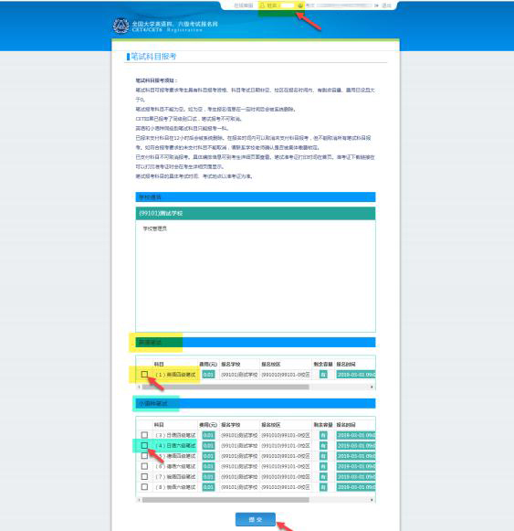 19、勾選科目,點(diǎn)擊“提交”: