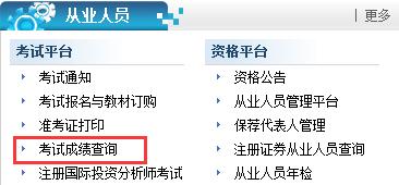 證券從業(yè)資格考試成績查詢查詢途徑:中國證券業(yè)協(xié)會網(wǎng)站-從業(yè)人員-考試平臺-考試成績查詢-當(dāng)次考試成績查詢。