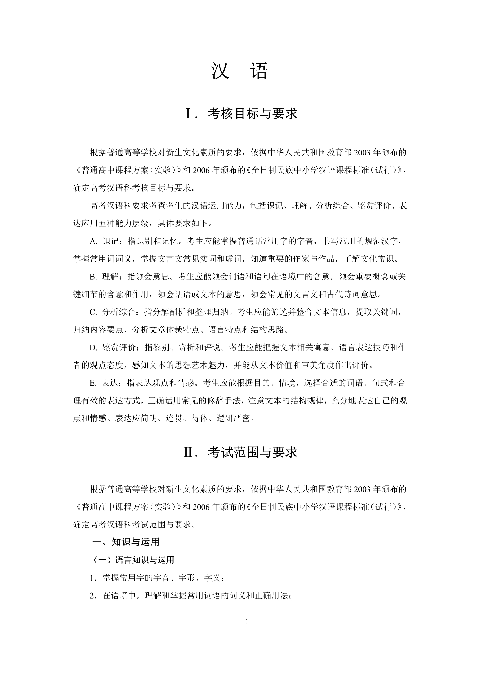 考試大綱是高考命題的規(guī)范性文件和標準,修訂和頒布年度考試大綱是一項例行工作。高考頻道根據(jù)地方教育考試院發(fā)布的《2018年普通高等學(xué)校招生全國統(tǒng)一考試大綱》得知,2018年天津高考漢語大綱已公布,小編已為大家整理如下: