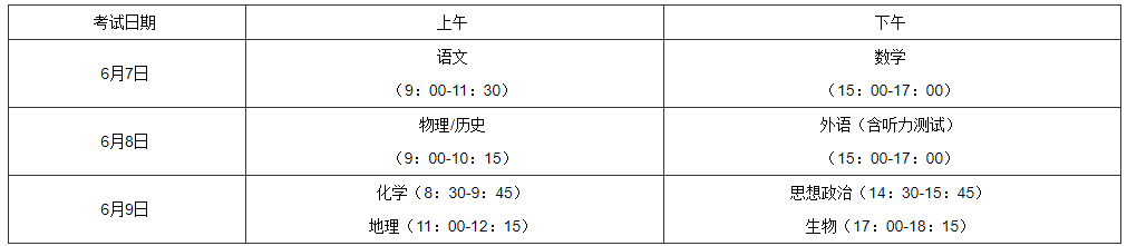 全國統(tǒng)考和普通高中學(xué)業(yè)水平選擇性考試于6月7日至9日舉行,具體科目考試時間安排為: