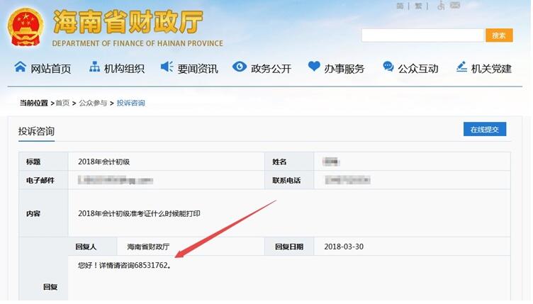 2018年初級會計職稱考試時間為5月12日至20日,眼看時間越來越近,很多考生對于海南初級會計準(zhǔn)考證什么時候打印的問題也愈發(fā)關(guān)注。截止2018年4月9日,海南省財政廳還未公布具體的初級會計職稱準(zhǔn)考證打印時間,不過海南省下轄的??谑?、三亞市、五指山市、瓊海市、儋州市、文昌市、萬寧市、東方市、定安縣、屯昌縣、澄邁縣、臨高縣、白沙縣、昌江縣、樂東縣、陵水縣、保亭縣、瓊中縣、三沙市的考生,如果有關(guān)于會計初級準(zhǔn)考證打印的相關(guān)問題,也可以按照下圖所示的信息咨詢。