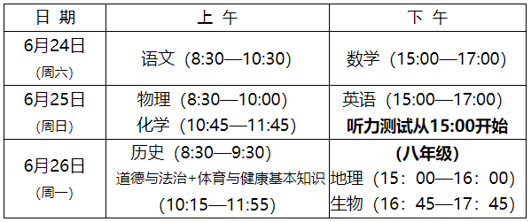 經(jīng)研究,2023年福建三明中考時(shí)間安排在6月24日-26日舉行,具體科目考試時(shí)間安排如下: