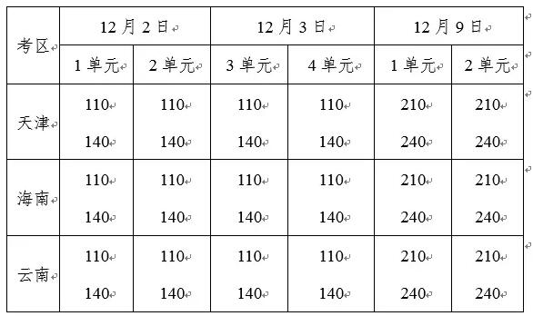 上午9:00—11:00,下午14:00—16:00,每單元2小時(shí)。