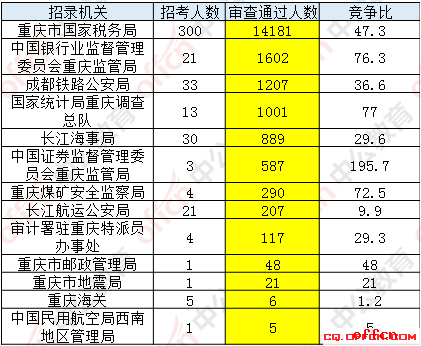 為幫助廣大考生更清晰的了解今日報名情況,整理了重慶市招錄機關的招錄情況,供廣大考生參考: