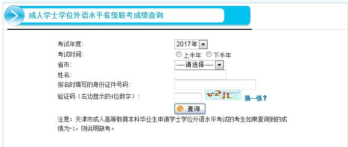 點(diǎn)擊進(jìn)入>>>2017年下半年天津成人學(xué)位英語(yǔ)考試成績(jī)查詢?nèi)肟冢ㄒ验_(kāi)通)