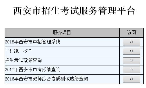 1. 進(jìn)入西安市教育局門戶網(wǎng)站,點(diǎn)擊頁面中的“2018年西安市中考(網(wǎng)上報名、成績查詢、志愿填寫、錄取查詢)”鏈接,進(jìn)入到“西安市招生考試服務(wù)管理平臺”,再選擇“西安市中招管理系統(tǒng)”鏈接,按照頁面提示,進(jìn)行相關(guān)的操作。2.直接使用IP地址訪問“西安市招生考試服務(wù)管理平臺”。