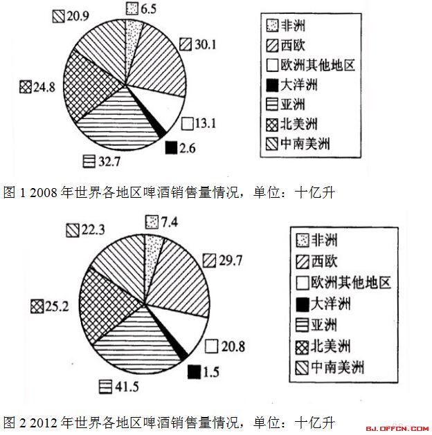 4.2012年亞洲啤酒銷量的同比增長(zhǎng)量與中南美洲增加的銷量相比( )