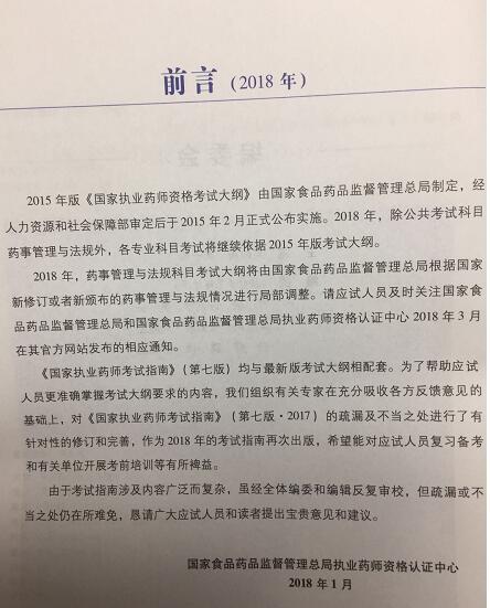 2018年執(zhí)業(yè)藥師考試大綱已公布,除公共科目藥事管理與法規(guī)外,各專業(yè)科目考試將繼續(xù)一級2015年版考試大綱。以下截圖來自于新2018年考試教材前言,給考生們參考!