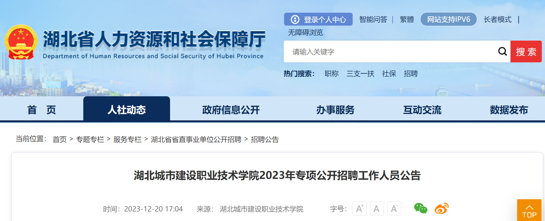 湖北省人力資源和社會保障廳網(wǎng)站(http://rst.hubei.gov.cn/bmdt/ztzl/hbsszsydwgkzp/zpgg/)、湖北省住房和城鄉(xiāng)建設(shè)廳(主管部門)網(wǎng)站(https://zjt.hubei.gov.cn/)、湖北城市建設(shè)職業(yè)技術(shù)學院(招聘單位)網(wǎng)站(https://www.hbucvc.edu.cn)為本次公開招聘公告發(fā)布網(wǎng)站,湖北城市建設(shè)職業(yè)技術(shù)學院網(wǎng)站(https://www.hbucvc.edu.cn)為本次專項公開招聘面試成績、錄取情況等相關(guān)信息發(fā)布網(wǎng)站,請考生密切注意相關(guān)信息。