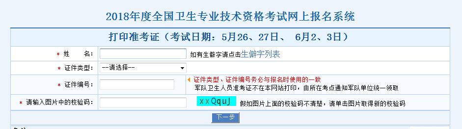 點擊進入>>>2018衛(wèi)生專業(yè)技術(shù)資格考試準考證打印入口【已開通】