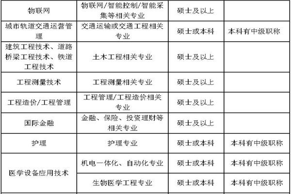 學(xué)歷要求:碩士及以上,個(gè)別專業(yè)可放寬至有相關(guān)專業(yè)中級(jí)職稱的本科;具有副高級(jí)及以上職稱的學(xué)歷不做要求。