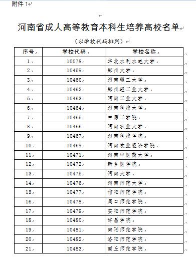 附件:1.河南省成人高等教育本科生培養(yǎng)高校名單