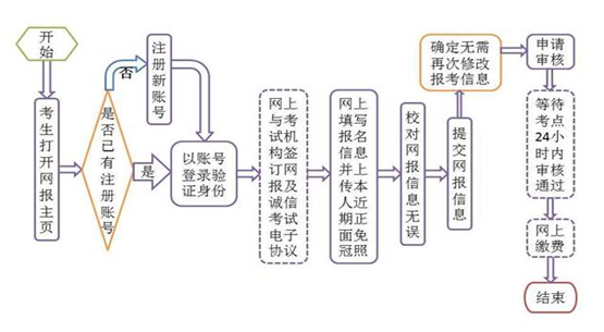 報名分為網(wǎng)上填報基本信息、報名信息審核確認、網(wǎng)上繳費三個過程。