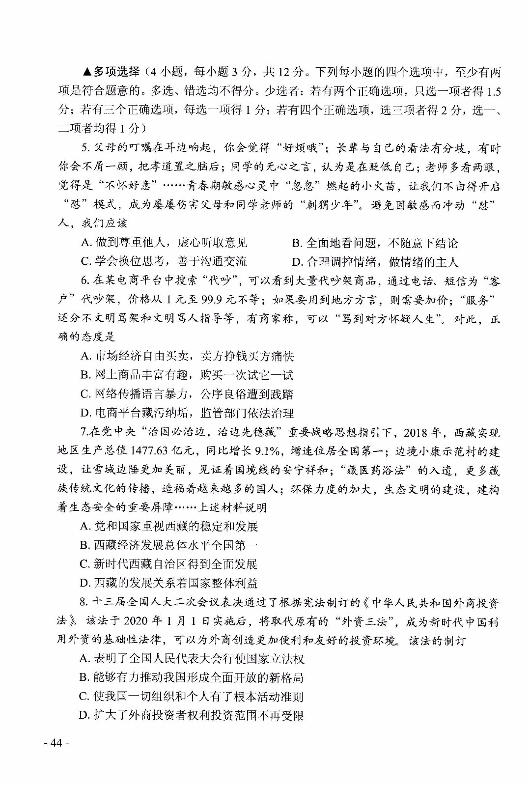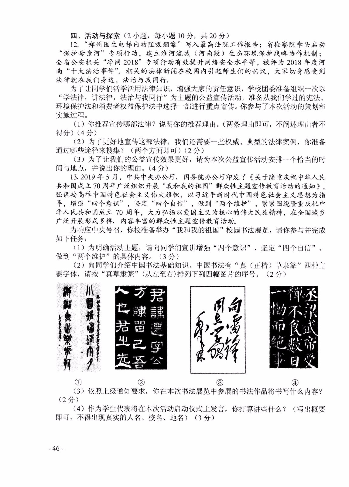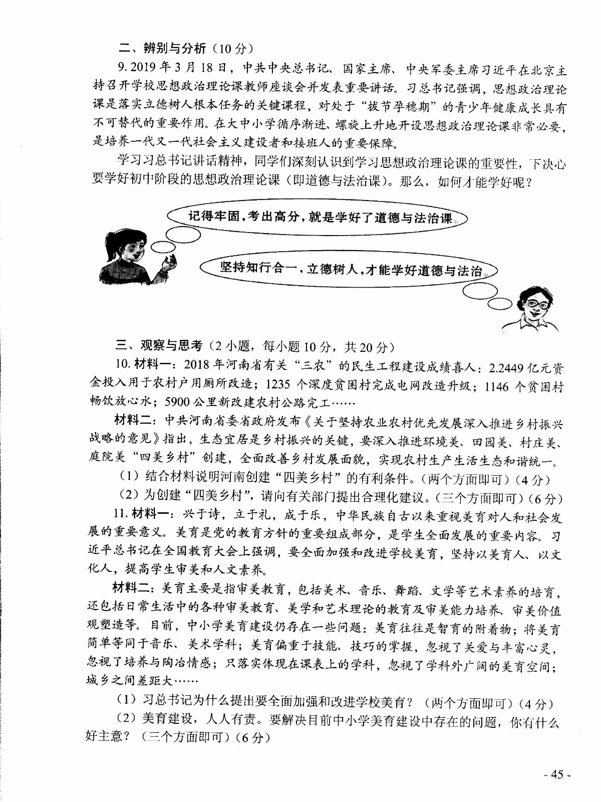 2019年河南信陽中考政治科目考試現(xiàn)已結(jié)束,為方便考生及時估分,中考頻道在本次考試結(jié)束后發(fā)布了“2019年河南信陽中考政治試卷”僅供考生參考學習,在此預(yù)祝廣大考生取得優(yōu)異的成績,請繼續(xù)關(guān)注我們!