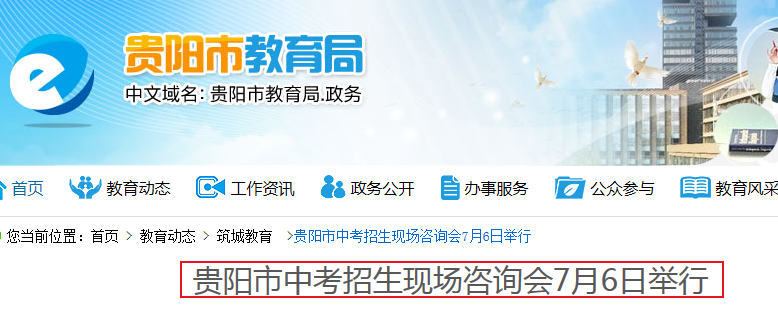 2019年貴陽市中考招生現(xiàn)場咨詢會由市教育局主辦,是貴陽市官方中考咨詢平臺。咨詢會將貫徹落實教育部招生工作“陽光工程”的精神,宣傳貴陽市高中階段學校招生的有關(guān)政策,全面展示貴陽市高中階段教育資源,加強學校招生信息公開,堅持公益性原則,以服務(wù)學校、服務(wù)家長、服務(wù)考生為宗旨,為學生、家長和學校搭建面對面的咨詢平臺,為廣大考生提供直接向招生學校咨詢的機會,以更好地了解招生信息、科學填報志愿。