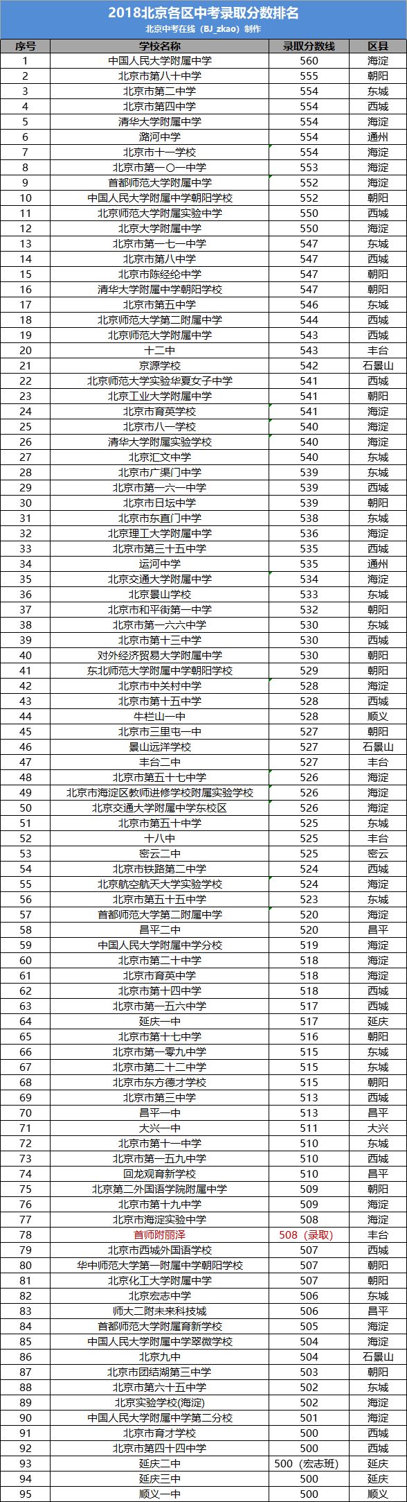 你有著最令人羨慕的年齡,你的面前條條道路金光燦燦,愿你快快成長起來,去獲取你光明的未來。2018北京中高統(tǒng)招錄取分?jǐn)?shù)線大部分已經(jīng)出爐,整理了2018年中考錄取分?jǐn)?shù)500分以上的學(xué)校排名,家長可以根據(jù)這個排名大致了解北京各區(qū)的教育現(xiàn)狀,為中考升學(xué)做打算。